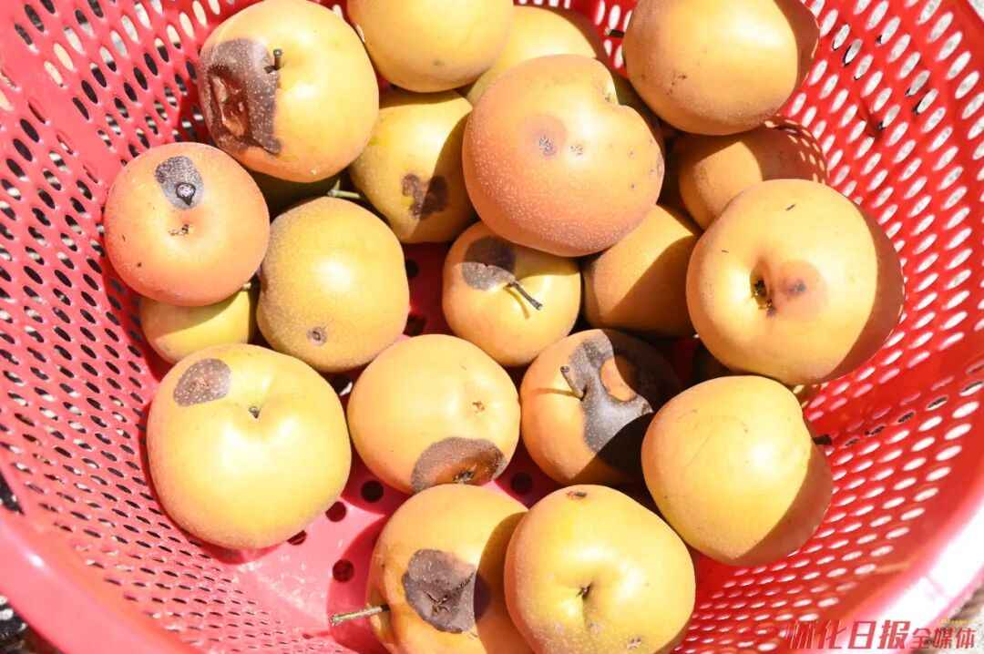 2021年以来,梨花村村民发现吸果夜蛾危害金秋梨,因其量少影响小,便不甚在意。可近年来,随着吸果夜蛾数量不断增加,村民的金秋梨产量也断崖式下降。村民杨秀华告诉记者:“被吸果夜蛾咬过的金秋梨,会全部烂掉,只能运回家给鸡鸭吃,去年便挑了19担金秋梨回家喂鸭。受虫害影响,村民们苦不堪言。”