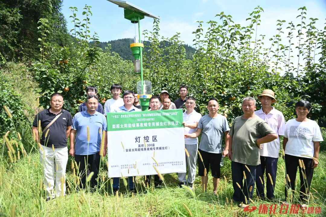 政校企牵手,村民实现稳产增收。为了让杀虫灯有效应用,市、县两级农业部门还为村民免费安装一批杀虫灯,建立金秋梨蛀果类害虫绿色防控示范区,同时驻村研发团队还详细为村民们讲解杀虫灯安装位置、使用方法和注意事项,确保杀虫灯间距合理、功能正常。