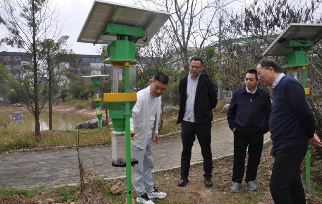 会议期间,农业农村部科技发展中心项目专员李昌盛先生、山东省农业科学院戈峰研究员、华中农业大学姜道宏教授三位专家专程莅临湖南本业绿色防控科技股份有限公司研发基地进行参观指导。在公司董事长蔡夫业的陪同下,专家们实地考察了物理消杀产品研发实验室、中试生产线以及技术实验应用展示区,对公司在精准光诱控技术领域取得的创新成果给予了高度评价。